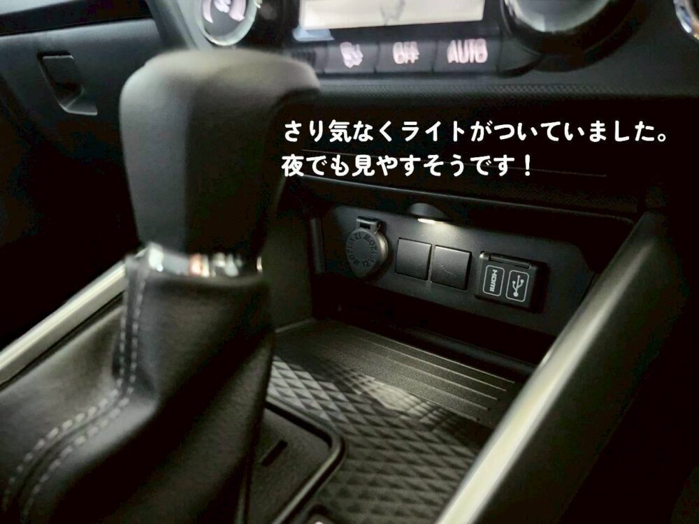 スマホを置いたり線を繋いだりと、暗い中では見えにくいので、さり気ない気遣いが嬉しいですね。