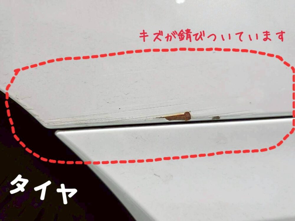 キズがついてから時間がたっているので、フェンダーには錆が出てきていました。